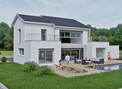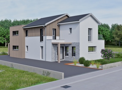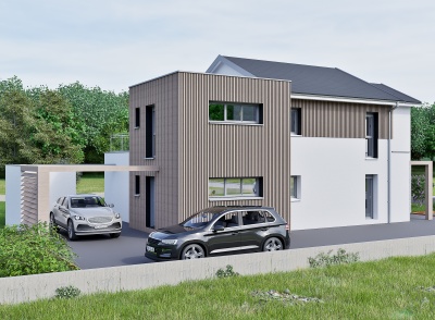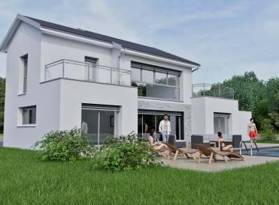 Ce projet à Offemont témoigne du savoir-faire d’IMO ÉCO dans la construction de maisons individuelles contemporaines sur mesure.