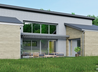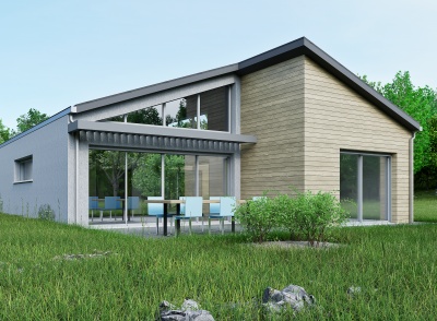 Grâce à la modélisation 3D, chaque espace a été conçu et visualisé avant la construction, permettant aux clients de valider l’agencement, les volumes et les choix de matériaux responsables et de qualité. Une partie de la maison a été habillée en bois, apportant chaleur, élégance et respect de l’environnement.