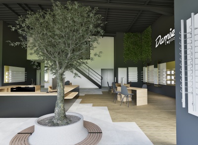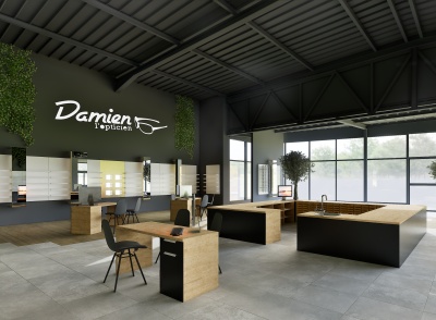 La conception 3D a joué un rôle central dans ce projet de transformation d’un bâtiment existant en magasin d’optique. Dès les premières étapes, la modélisation 3D a permis de traduire les intentions du projet en volumes concrets, lisibles et cohérents.
