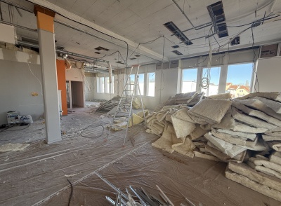 Les travaux ont porté sur une modernisation complète des espaces intérieurs afin d’améliorer le confort d’usage, la lisibilité des parcours et la qualité d’accueil. Les interventions comprennent l’installation de plafonds démontables facilitant l’accès aux réseaux techniques, l’intégration d’un éclairage par spots encastrés, ainsi que la réorganisation des volumes intérieurs.