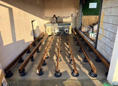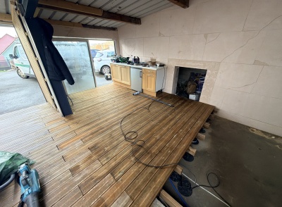 • Réalisation d’une terrasse en bois traité posée sur plots avec intégration de LED au sol,