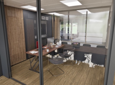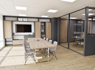 Grâce à la modélisation 3D, le client a pu visualiser l’agencement des bureaux et des rangements avant leur réalisation. L’ameublement sur-mesure a été conçu pour s’adapter parfaitement aux besoins spécifiques et à la configuration des lieux, offrant une solution à la fois pratique et esthétique.
