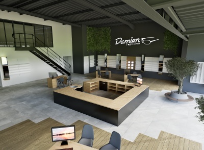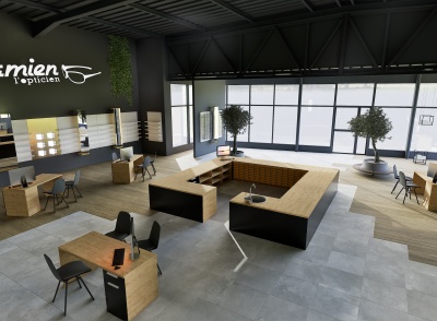La conception 3D a joué un rôle central dans ce projet de transformation d’un bâtiment existant en magasin d’optique. Dès les premières étapes, la modélisation 3D a permis de traduire les intentions du projet en volumes concrets, lisibles et cohérents.