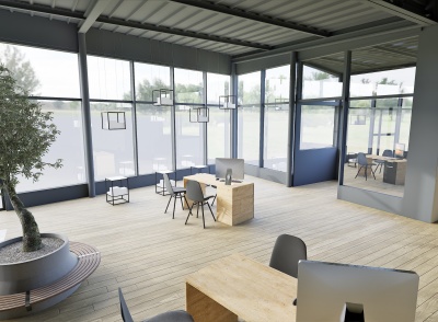 La modélisation 3D a facilité les échanges avec le client et les entreprises, limitant les ajustements en phase travaux et sécurisant les décisions techniques, notamment sur la structuration des espaces, la création d’une cloison intérieure de 5 mètres et l’adaptation des équipements existants.