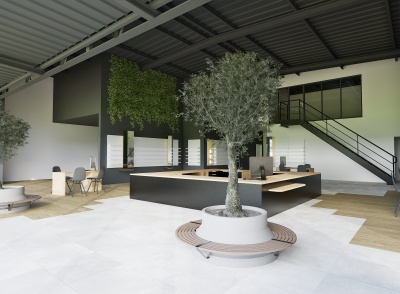 La conception 3D a également permis de travailler les ambiances et les matières, notamment l’utilisation d’un carrelage à effet béton et à effet parquet, ainsi que la mise en valeur du caractère métallique du bâtiment et la conservation des poutres intérieures apparentes. Chaque choix a été validé en amont, assurant une parfaite cohérence entre le projet conçu et le chantier en cours.