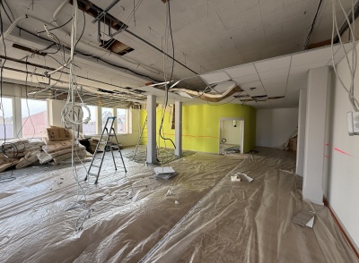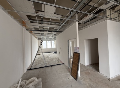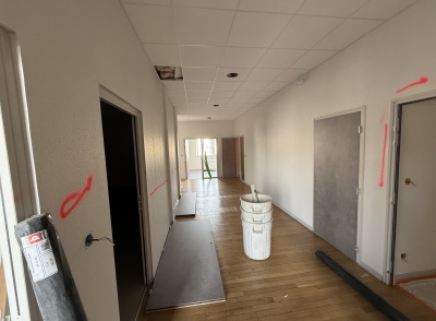 Les travaux ont porté sur une modernisation complète des espaces intérieurs afin d’améliorer le confort d’usage, la lisibilité des parcours et la qualité d’accueil. Les interventions comprennent l’installation de plafonds démontables facilitant l’accès aux réseaux techniques, l’intégration d’un éclairage par spots encastrés, ainsi que la réorganisation des volumes intérieurs.