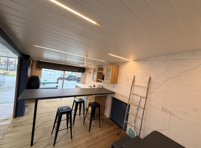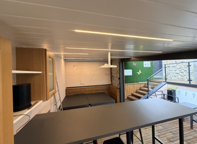• Mise en œuvre d’un plafond PVC habillé de lignes LED dimmables pour moduler l’ambiance lumineuse,