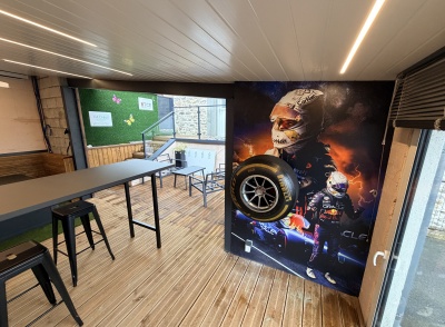 Un ancien garage métamorphosé en un véritable lieu de réception et de détente.